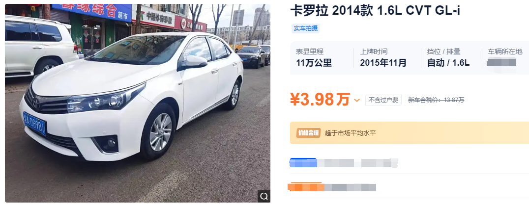 丰田卡罗拉:保值率更高,4万以内只有10年前的款型都说“开不坏的丰田”,产品耐用已经是丰田车型的特点之一,因此作为品牌旗下的畅销车型之一,丰田卡罗拉在二手车市场有着较高的保值率,4万元以内的购车预算只能买到2014款以内的丰田卡罗拉,而且这还是在全车原版无事故的情况下。